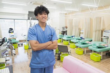 柔道整復師の仕事は、サッカーに打ち込んでいたときお世話になった整形外科で知りました。働く姿を間近に見て「この仕事なら自分も頑張って続けられる」と直感しました。東京呉竹医療専門学校を選んだのは国家試験の合格率と雰囲気の良さにひかれたから。学費もリーズナブルでした。先生方の指導法も良かったですね。ONとOFFのメリハリをつけた厳しくも楽しい授業で、身体の仕組みや整復法などをわかりやすく学ぶことができました。友だちにも恵まれましたね。テスト前は学校に残ってみんなで一緒に勉強して、終わったら思いっきり遊ぶ。仲間と充実した学生生活を送れたのは良い思い出です。今でもよく集まって遊び、仕事の相談もしています。