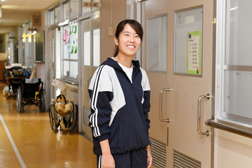 中学の頃に出会った先生に憧れ、体育の先生をめざしてスポーツ教育学科に入学。複数の免許・資格の取得にも挑戦したくて、特別支援教育に関連する授業も履修しました。3年生の時に先生の勧めで体験したのが特別支援学校でのボランティア。子どもと一緒に遊んだり、身体を動かしたり、授業見学などを行うなかで、特別支援学校の特長でもある少人数体制で、一人ひとりと深く関わり、それぞれの子どもに合ったきめ細かい指導ができることに感動! 卒業後は特別支援学校教諭になろうと決意しました。ボランティアでも実習でも職場でも、出会う先生方はすごい人ばかり。子どもとの関わり方や仕事の進め方など、見習いたい部分がいっぱいです。