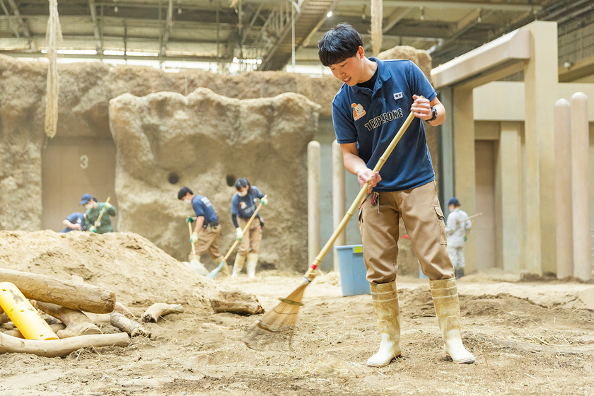 私がメインで担当しているのは、アジアゾウの飼育です。円山動物園を代表する大型動物の飼育を任されていることは楽しく、やりがいも大きいですね。一方で、絶滅危惧種である希少なアジアゾウの命を預かっている責任も感じながら、飼育に取り組んでいるところです。仕事で面白いと感じるのは、動物にとって良い方法などを調べ、考えたことを実行した際に、動物たちがイキイキとした姿を見せてくれる時ですね。今後はもっと動物本来の行動を引き出せる飼育をして、来園される皆さんにもっと動物達の魅力を伝えられたらと思います。また動物の生息地の環境保全活動などにも参加し、動物・自然と、人との架け橋になるような飼育員を目指したいです。