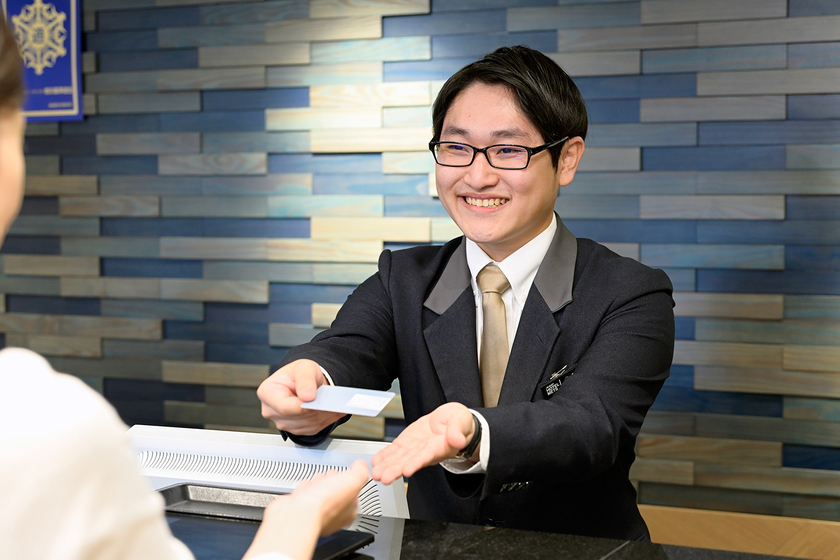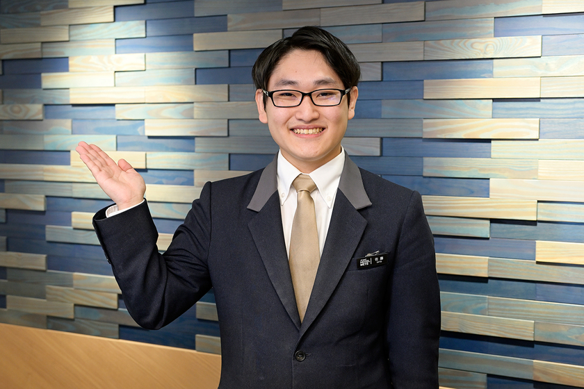 接客業という業種は「人にサービスすること」が仕事であり、それはお客様だけではなく、スタッフに対しても同じです。常に思いやりをもって接することが大切だと考えています。今の仕事内容は、チェックイン・チェックアウトの受付対応、電話応対、予約や料金の調整など。色んな人とかかわりながら日々の業務をこなし、毎日スキルアップしていると感じています。お客様に名前を憶えていただいたときや、チェックアウト時に接客を褒めていただけたときはやっぱりうれしいですね!やりがいを感じる瞬間だと思います。