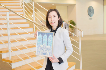 趣味は絵画制作という加藤先生。青一色のペンでパターンや線を細密に描き込む画法で、個展も開催したそう