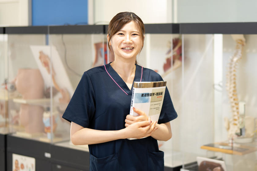 幼い頃からスポーツをしていて、ケガをすると接骨院に通っていました。遠方で頻繁に通えなかったのですが一度の施術で痛みがおさまり、それが人の手で行われていることに感動!その先生のようになりたいと柔道整復師をめざしました。この学校に入学して感じたのは、先生方の教え方がとても上手なこと。知識が増える中で「もっと学びたい!」と思えたのです。卒業後、病院勤務を経て、教える立場になりたいと教員になりました。現在、骨折、脱臼、捻挫、挫傷といったケガの発生原因や症状、どのような施術をするかを教える柔道整復理論という座学中心の教科を担当しています。「分かりやすかった」「ありがとう」など学生からの何気ない言葉が嬉しく、尊敬する先生方のような「学生全員がわかりやすい授業」を行えるよう、日々勉強と工夫を重ねています。