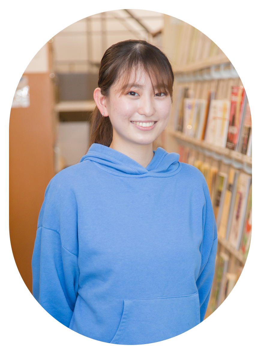 高校生の時、ニュースで見たジェンダー差別に「なんで?」と感じたことがきっかけとなり、すでにある価値観を問い直したくて、人間共生学科へ。ジェンダーや福祉を幅広く学べる環境で、“普通”は人によって違うことに気づき、毎回の授業が発見の連続です。自分の関心に沿って学ぶことはとても楽しいです!将来は、誰もが「ここで生きていい」と思える社会をつくる力になりたいです。