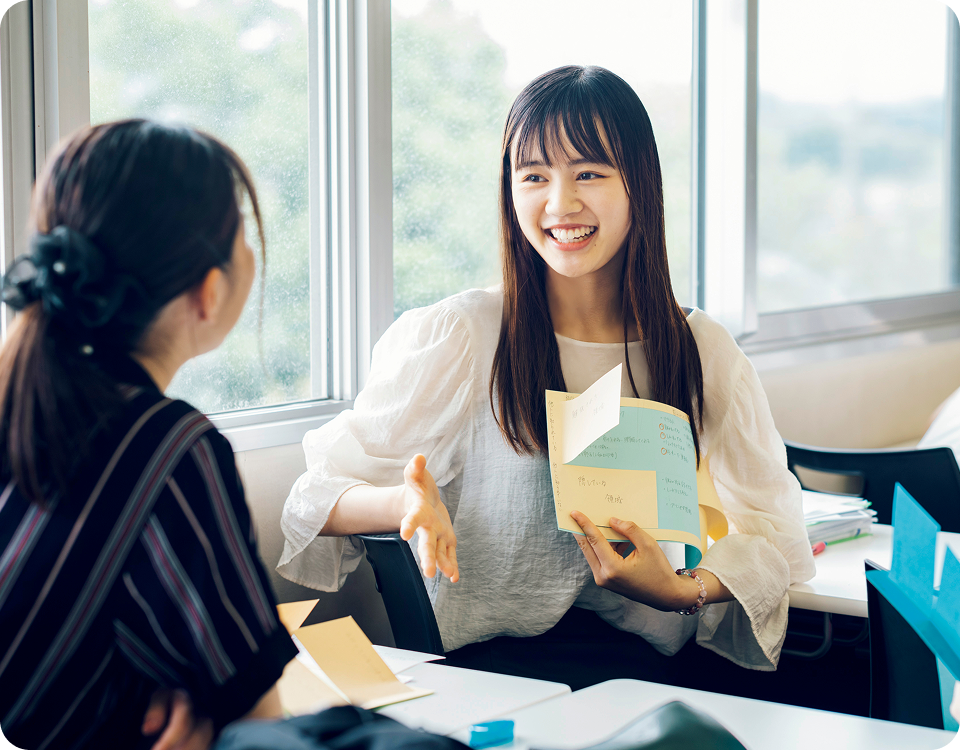 多様化した社会で求められるのは、異なる立場の人が支え合う共生社会の構築です。人間共生学科は、日々の生活で感じる“モヤモヤ”を学問として探究できる場所。“違いを認めて受け入れ、一緒に生きること”をテーマに、さまざまな人を理解し、社会にある当たり前を問い直す柔軟な考え方と人間関係力を身に付けます。