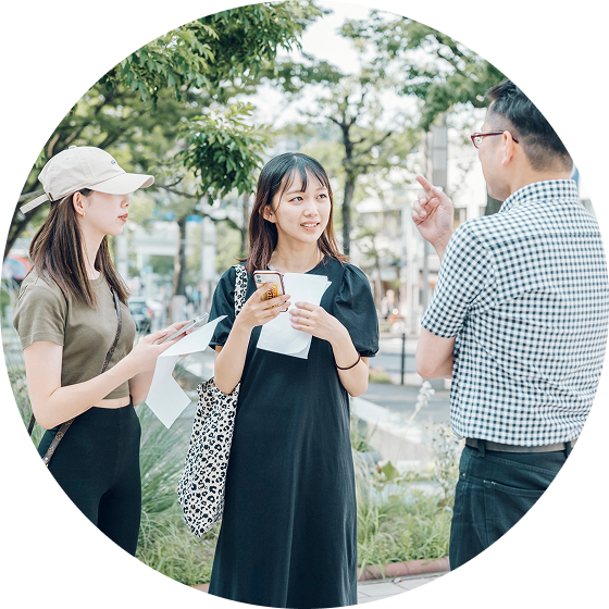 身に付けた専門知識やスキルを社会で生きる実践力にするため、地域の課題解決に取り組むプロジェクトへ参加。多様な立場の人と目標達成に向けて協働し、“カタチ”にするところまで取り組むことで、問題を解決する力を実践の中で養います。
