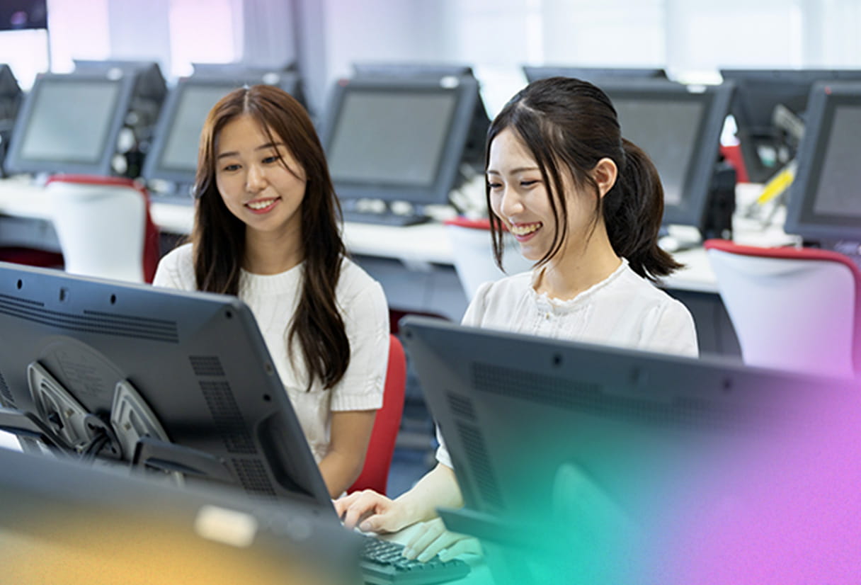 データや情報をもとに、社会のしくみを正しく理解し、さまざまな問題を解決するための情報技術を学びます。システムのしくみを考えるところから、実際につくり、使い続けるところまでを体験しながら、使いやすく、快適に操作できる画面や仕組みについても理解を深めます。卒業後は、実際の現場で活躍できるエンジニアをはじめ、AIやデジタル技術を使って社会の課題を解決する仕事、Web・映像・ゲームなどをつくるクリエイターとして、情報技術で未来を支える人材を目指します。
