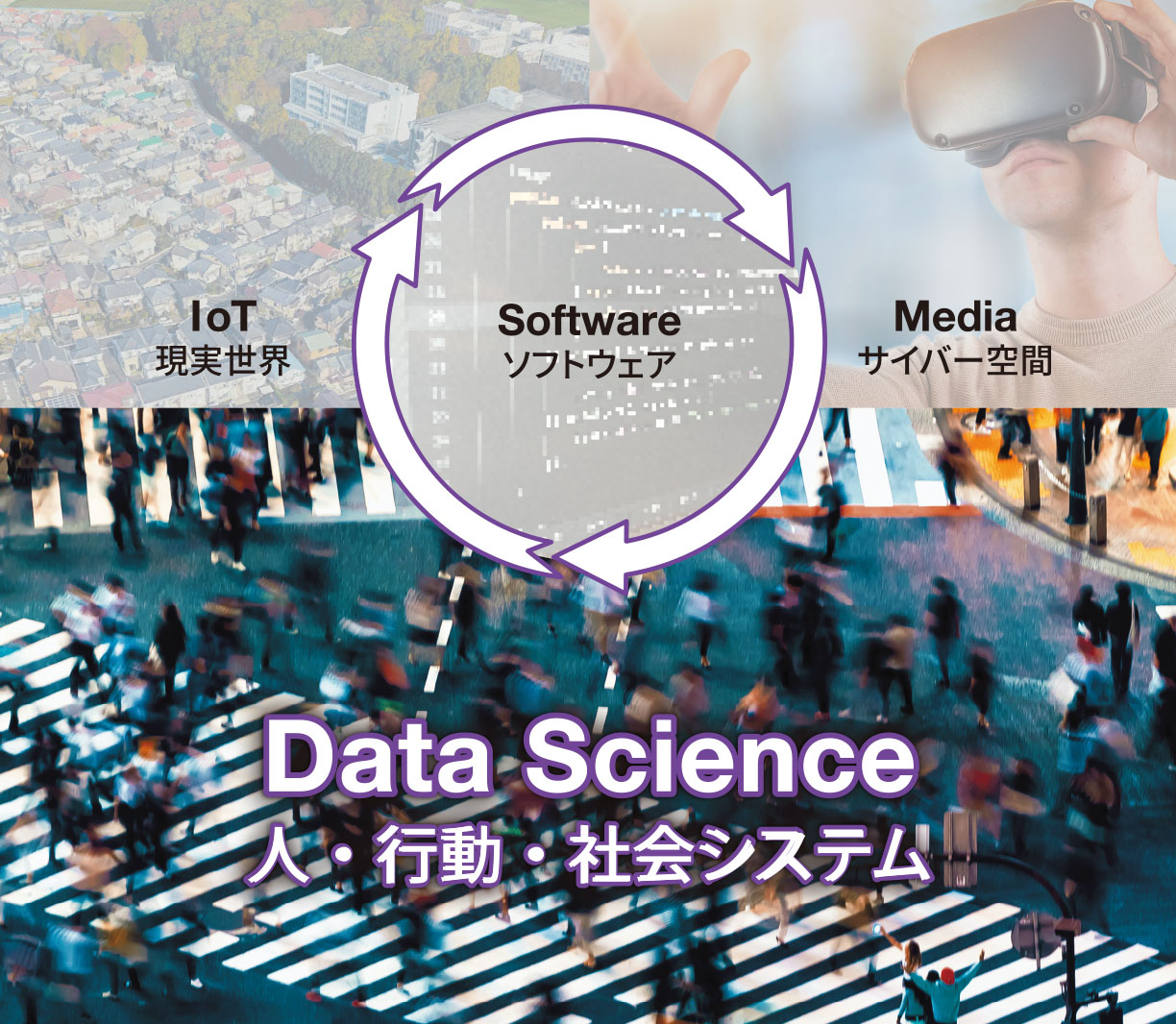デジタル技術と現実世界を高度に融合させたCPS*1の構築とSociety 5.0*2の実現を基盤としたデジタル社会への適応を目指し、社会のさまざまな課題を明らかにするために、関連する領域の専門家と協働して、多様なデータを収集・分析・予測し、体験を通して対象の理解を深め、エビデンスを基に解決法を考え提案できる人材となります。
