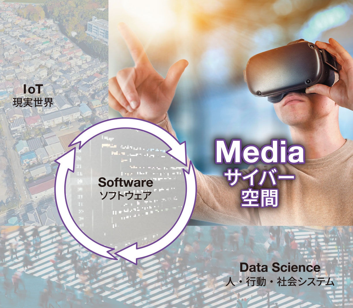 デジタル技術と現実世界を高度に融合させたCPS*1の構築とSociety 5.0*2の実現を基盤としたデジタル社会への適応を目指し、画像や音響等のメディア情報を活用し、社会的ニーズに適切に対応したシステムを開発できる人材となります。