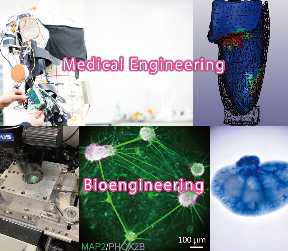 - 医工学の幅広い専門知識・技術・論理的思考力を身につけ、生体機能を回復・補助する医療・福祉に貢献できる人材