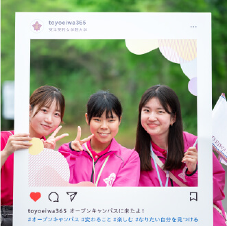 2026年4月から始まる新学部※の特設サイトと同じデザインを背景に、ひと足先に英和生気分で特別な1枚を撮影しませんか?SNSへの投稿ももちろんOK!たくさん撮って、たのキャンを一緒に盛り上げよう!