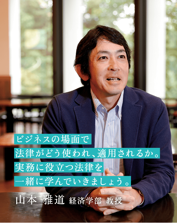 東京電力で携わったアブダビでの発電プロジェクトで、欧米の弁護士が支配する国際交渉を目の当たりにして衝撃を受け、ニューヨーク州弁護士になりました。それ以来、一貫して国際ビジネス法の実務に携わってきました。たとえばビジネス法の授業では、私が法務部長をしていたLINEを題材にして、利益を株主に配当すべきか、インサイダー取引をどう防止できるかをディスカッションします。このようなケースメソッドを通じて、実践力と問題解決力を養います。