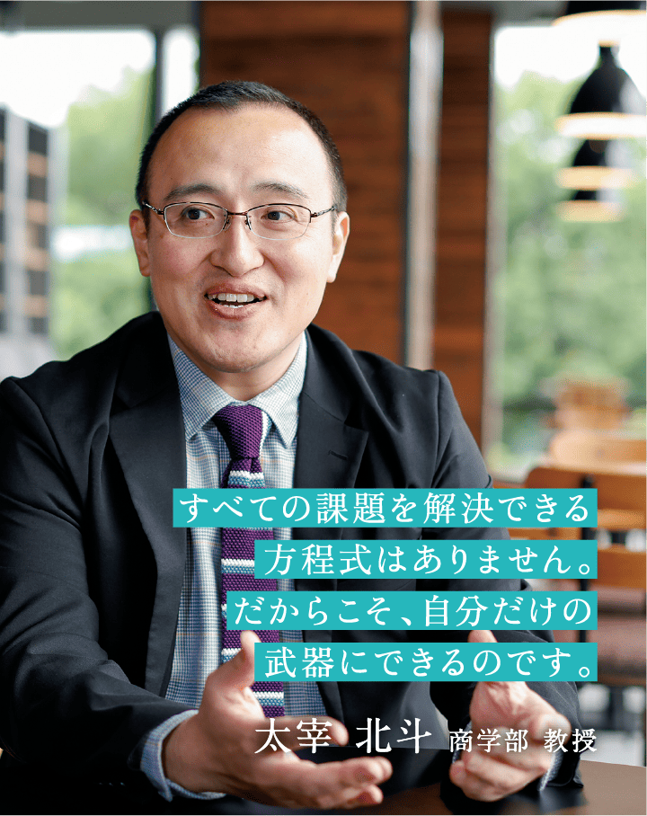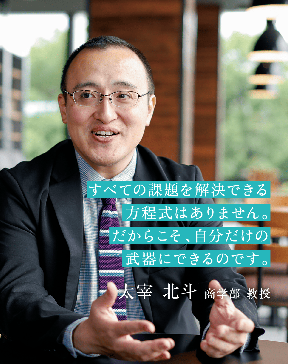 私が様々な取引先と対峙した社会経験から言えるのは、教科書によく出てくる一般的な定型のフレームワークは、実際のビジネスで通用しない場面が多いということです。だからこそ、実際のビジネスの場で課題を解決できた様々なケースメソッドを学び、最適な解決策を考え出せるようになることが必要です。私の授業では、日本の類似事例にあわせて書き起こしたオリジナルの教材などによって、楽しく、最先端の知識を学ぶことができますよ。