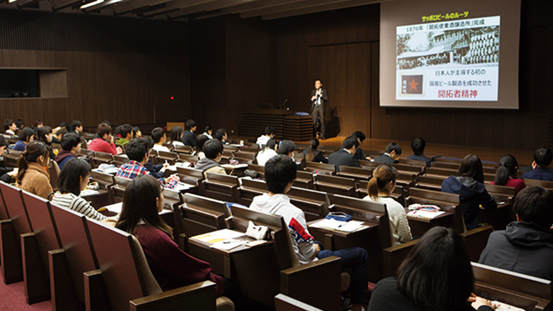 2年次向けに、正課(単位認定)のキャリア科目も開講しています。大手企業の人事担当者から出題される社会課題の解決に取り組むプロジェクト型学習や、就職活動を終えた4年生の体験談などを通して、今後のキャリアで生きるたくさんのヒントをもらうことができます。