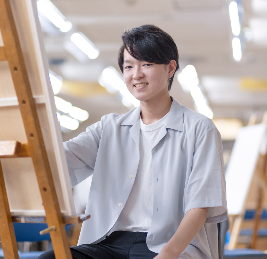 「ゲームの背景って、見栄えや世界観を支える役割を担っていて、意外と奥が深いな」と感じたのが、背景モデラーという職業をめざしたきっかけです。高校の職業適性検査での「CGデザイナーに向いている」という結果も後押しになり、専門学校への進学を決意。ただ、PCの扱いには慣れていましたが、デザインや絵を描くといった勉強はほとんどしてこなかったので、3年制で最初の1年間はデッサンや造形を学び、アナログでのデザインの基礎力がしっかり養えるトライデントを選びました。