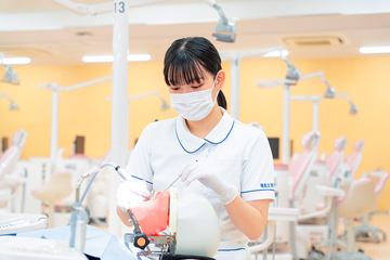 業務は大きく分けて3つ。(1)歯科疾患の予防処置、(2)歯科保健指導、(3)歯科医師の指示の下に行う歯科診療の補助です。歯石の除去や虫歯や歯科疾患の予防のためのブラッシング指導、食生活上のアドバイスも大切な仕事です。(2024年8月更新)